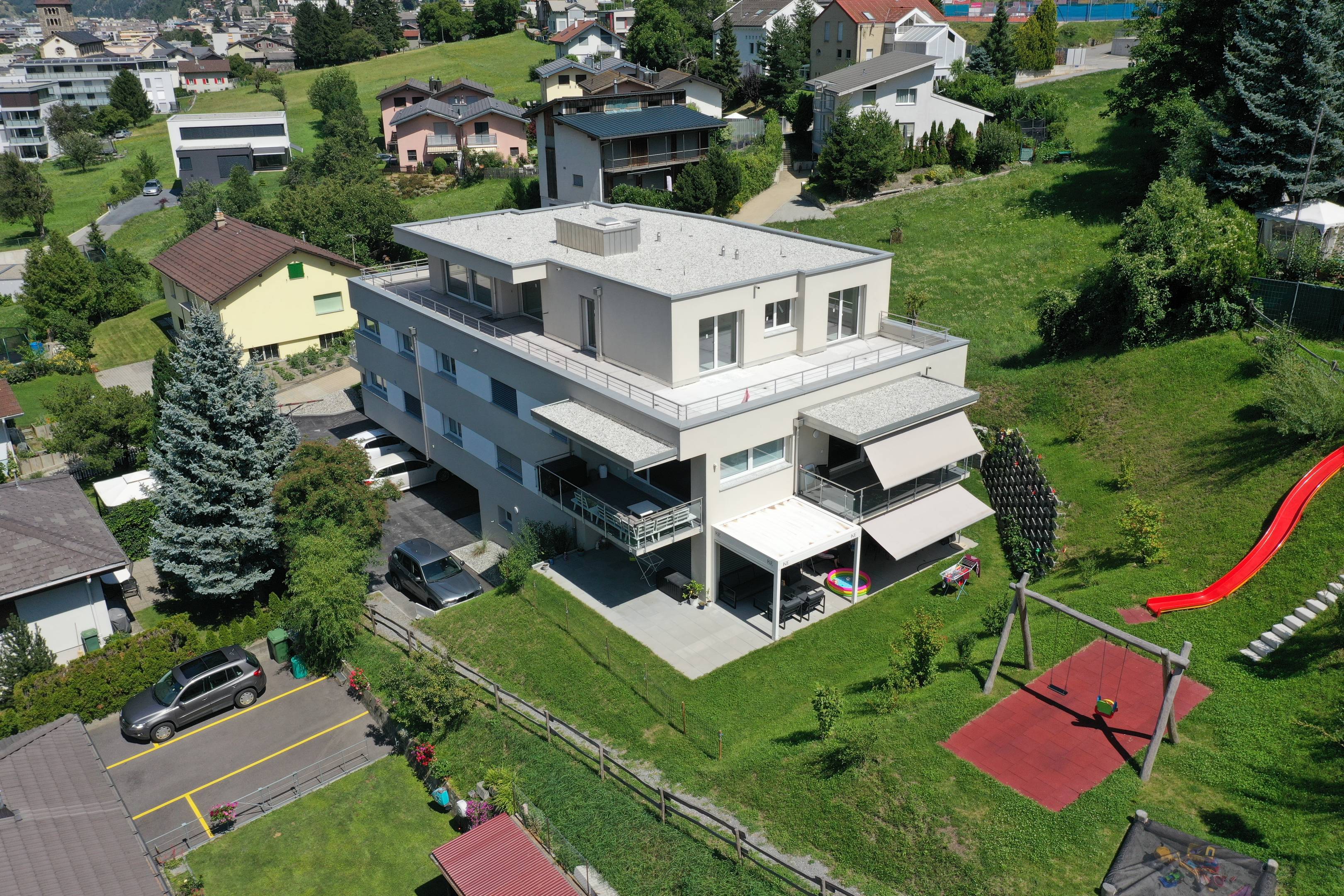Im Zentrum von Brig-Glis gelegen, bietet das «MFH Bäjiweg» viele Standortvorteile. Trotz ruhiger Lage, ist das Zentrum von Brig-Glis zu Fuss oder mittels ÖV (direkte Anbindung an den Ortsbus) schnell zu erreichen.